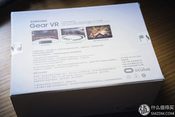 包装盒还是很大的,上面标示着适配的手机型号,以及大字标示着Oculus的技术支持。